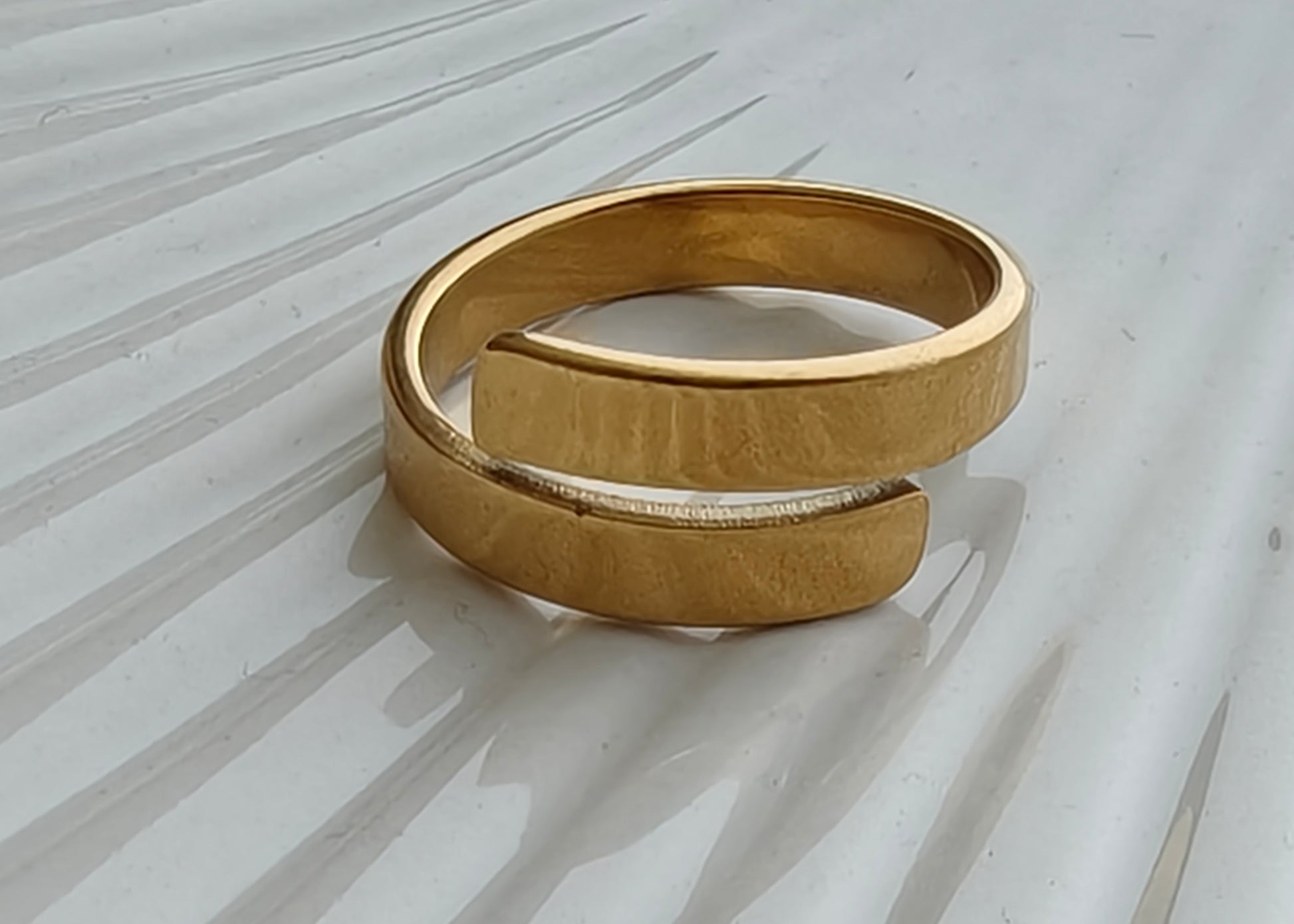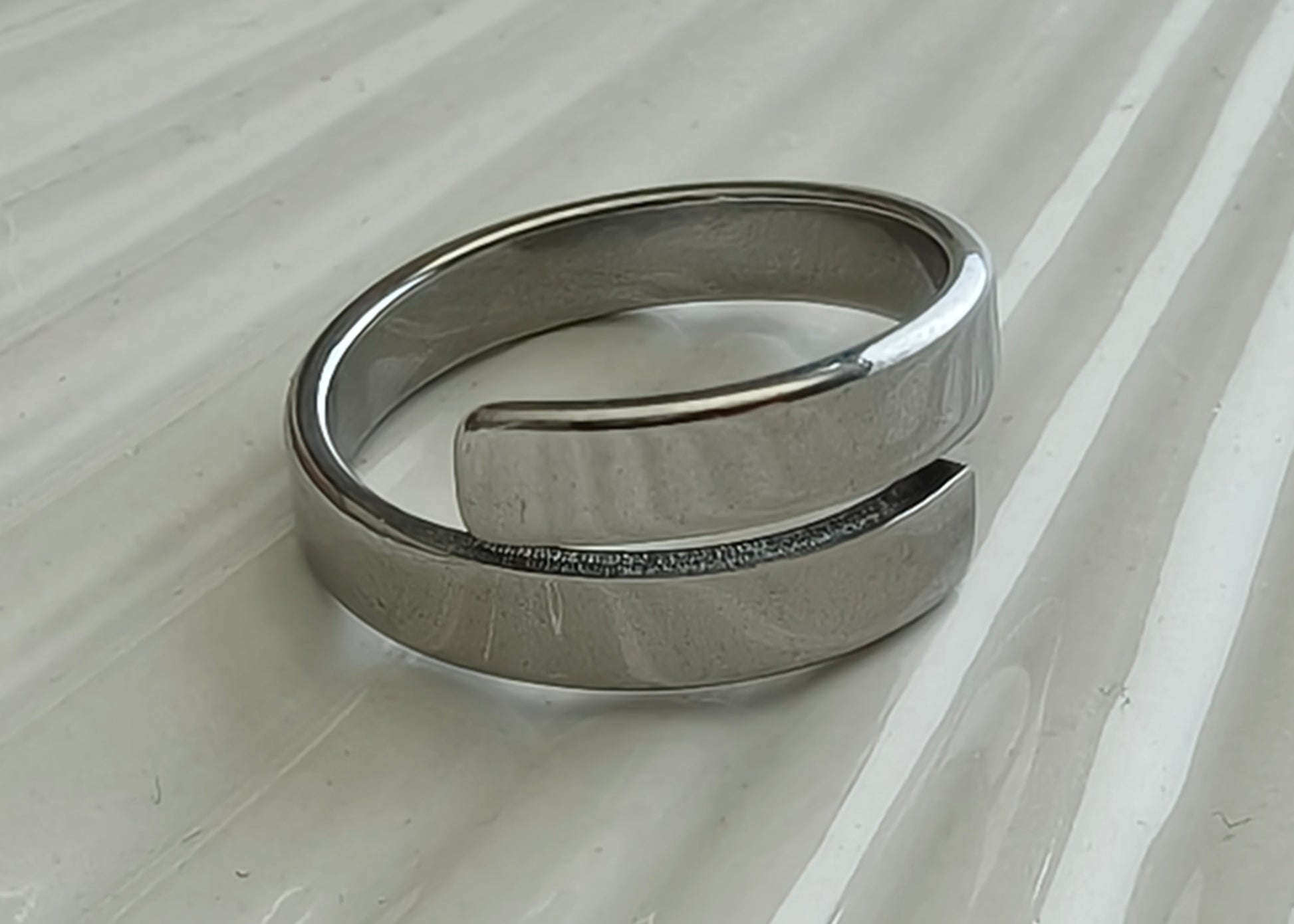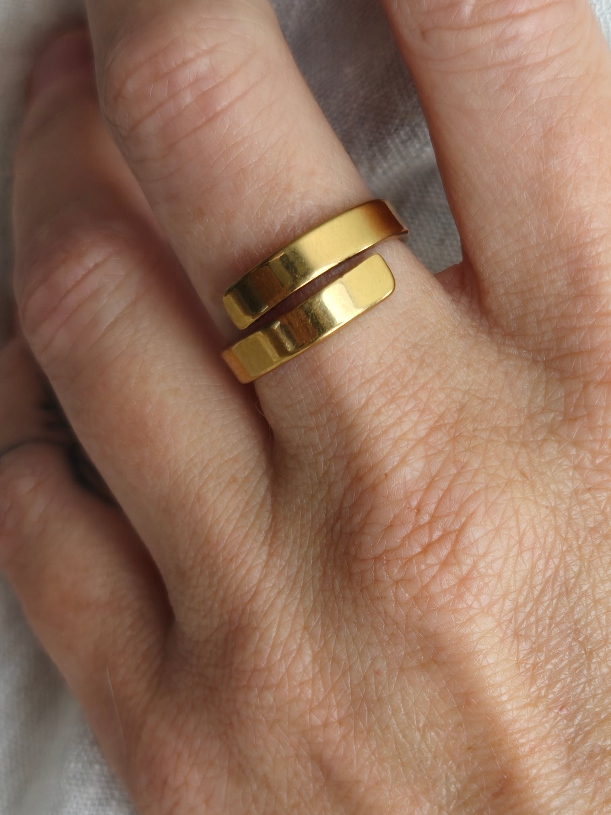 Our larger of the two Crossover rings at 4mm. These rings look great on their own and are also perfect for customisation, if you're wanting names, dates or quotes.