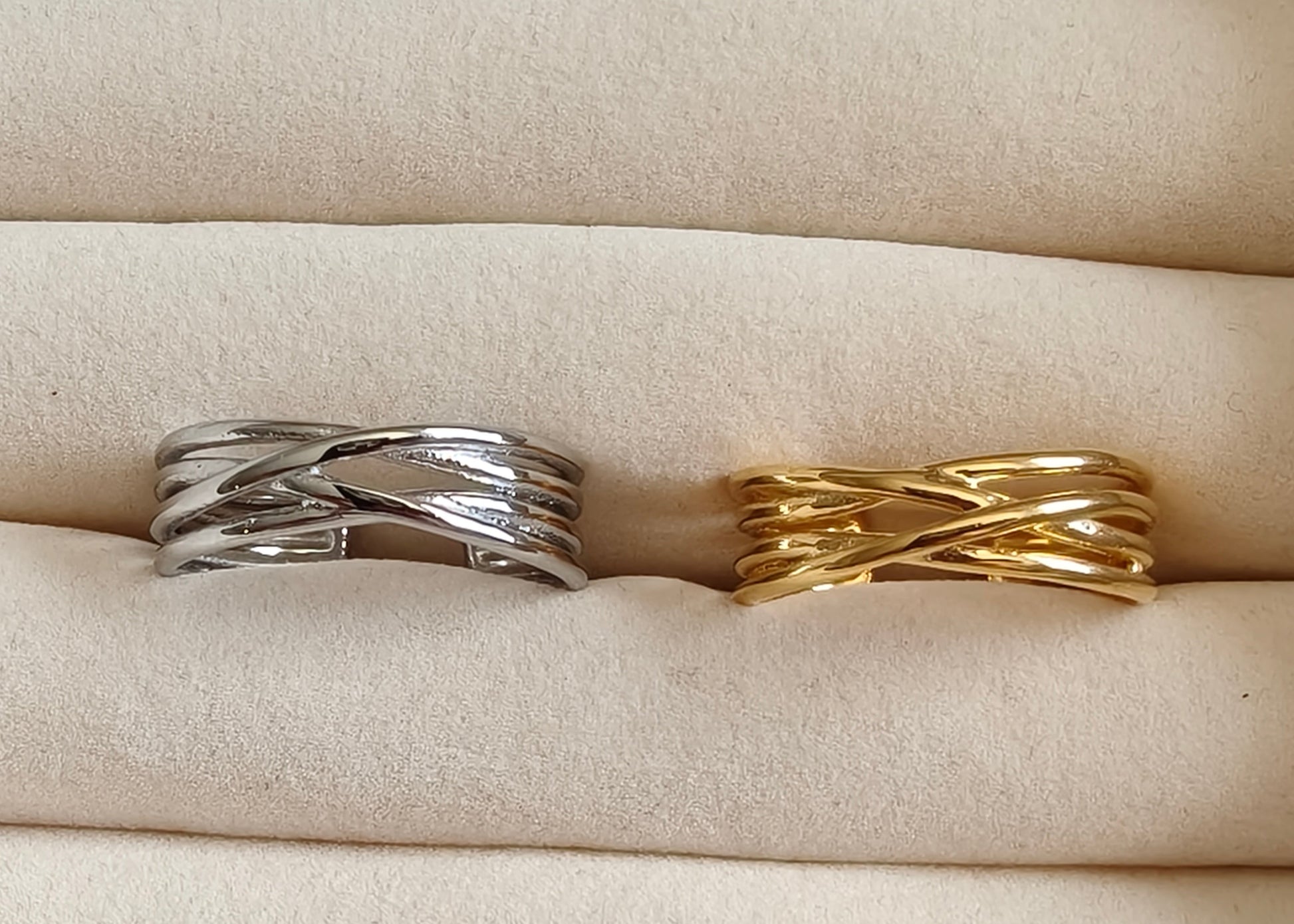 Our multi-band open ring is a great way to make a bold but subtle statement. This ring is open and comes in one size (approximately size 7), may be slightly adjustable.