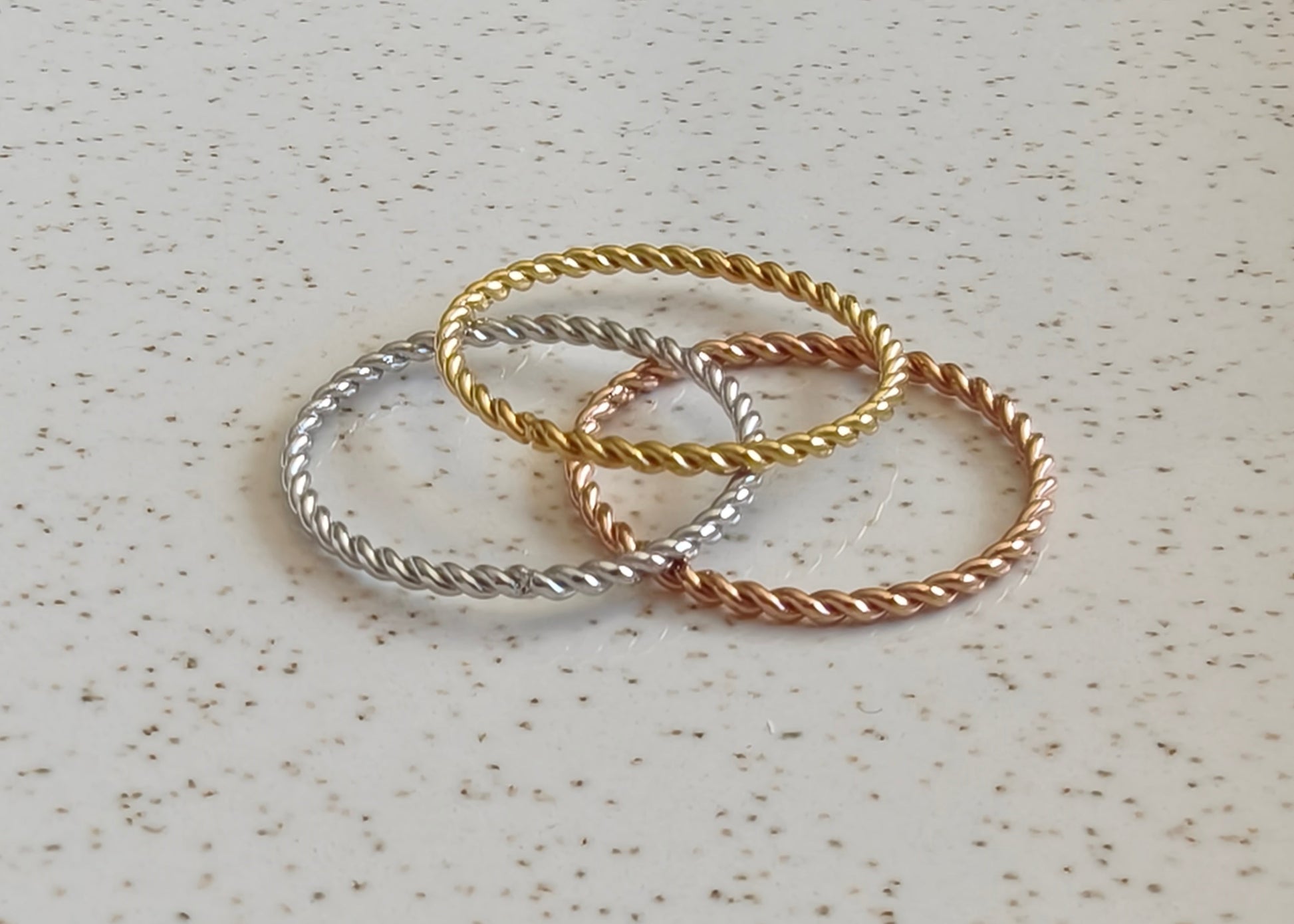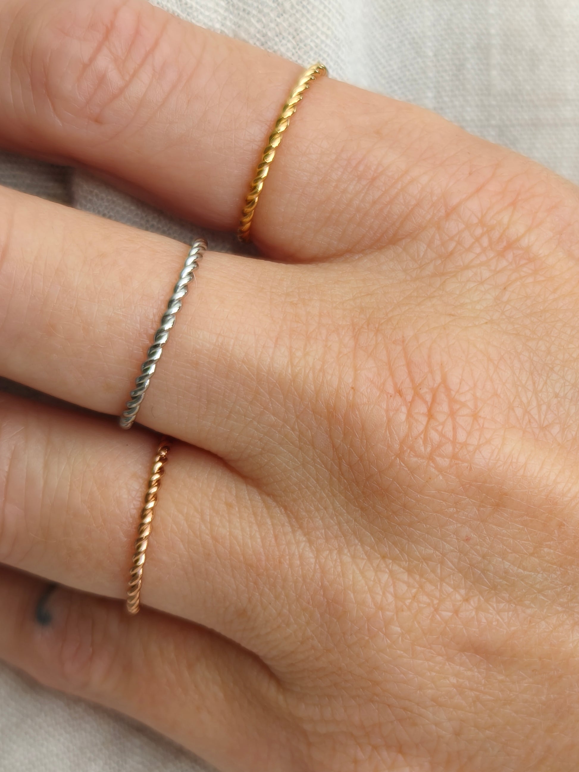 A beautiful addition to any stackable set or on its own. This thin dainty twister ring is a must have.